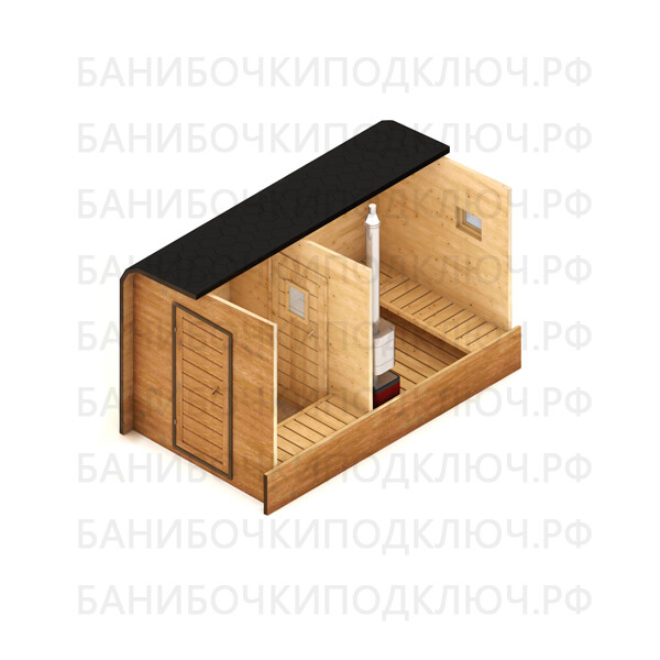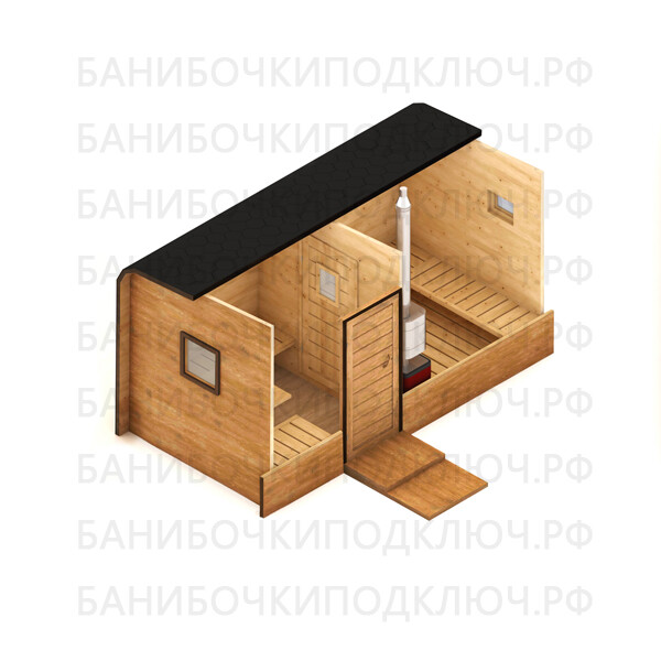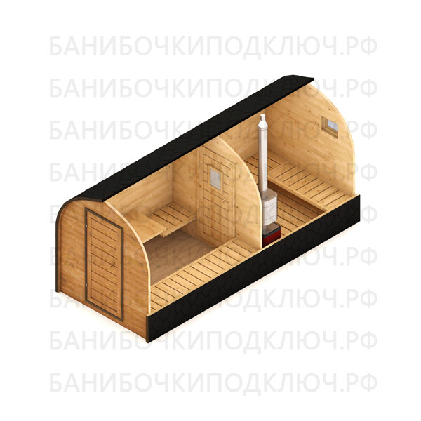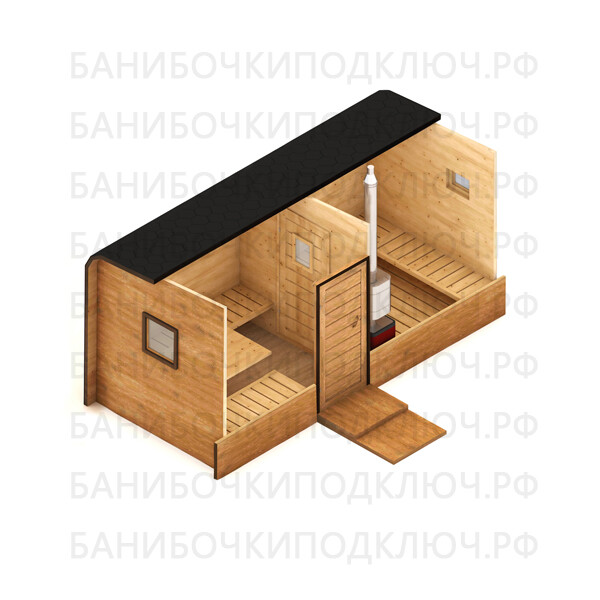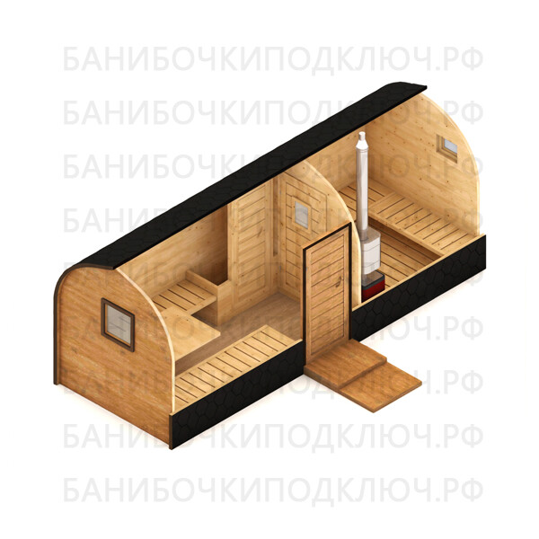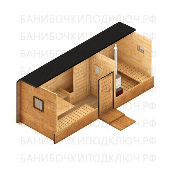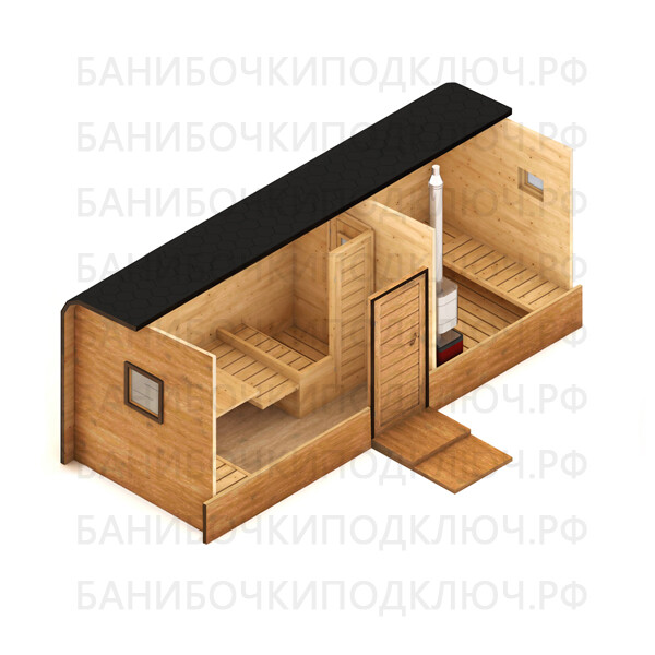 Баня Викинг 6 x 2,2 м с бок. входом и проходной мойкой
